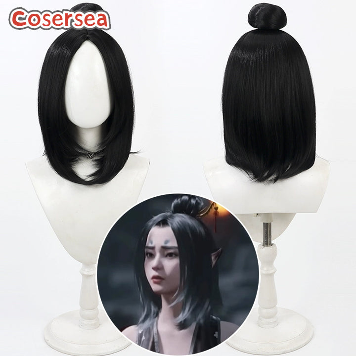 Black Myth: Wukong Fox Pingping 48cm Black Cosplay Wigs With Buns