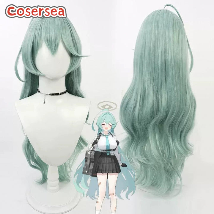 Blue Archive Kuchinashi Yume 90cm Wavy Turquoise Cosplay Wigs