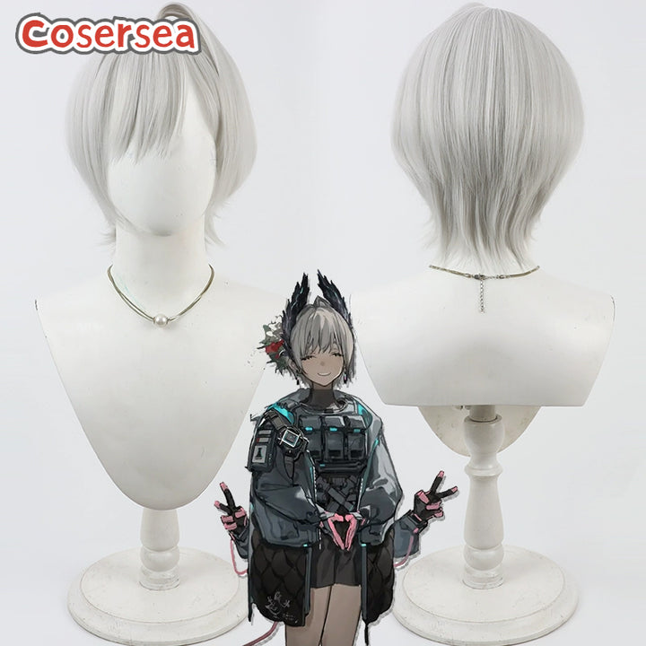 Cosersea Arknights Raidian 30cm Short Straight Silver White Cosplay Wigs