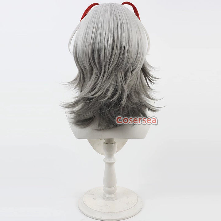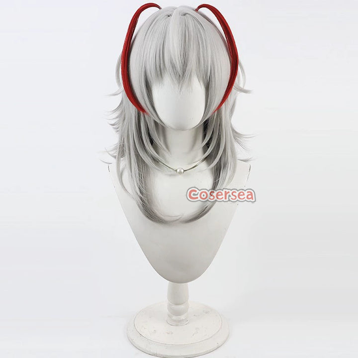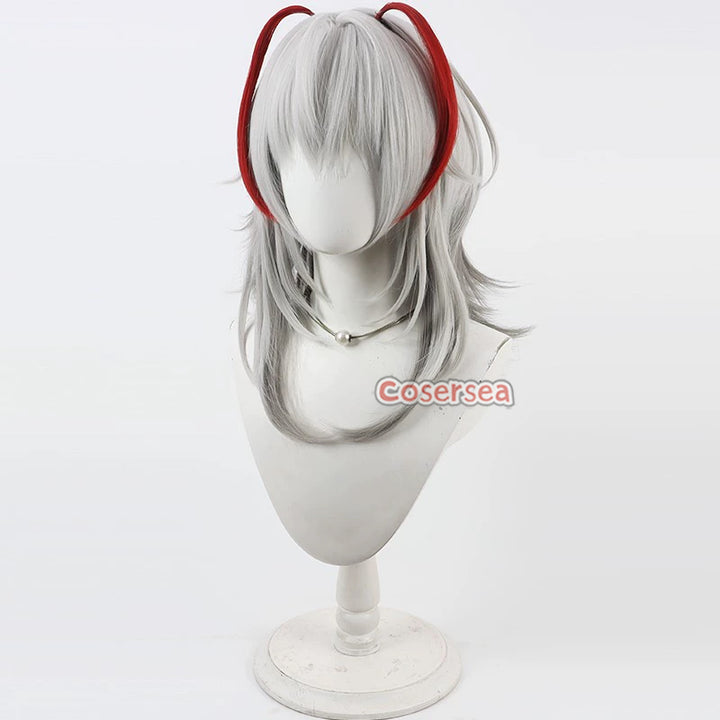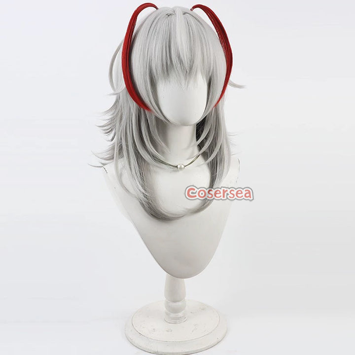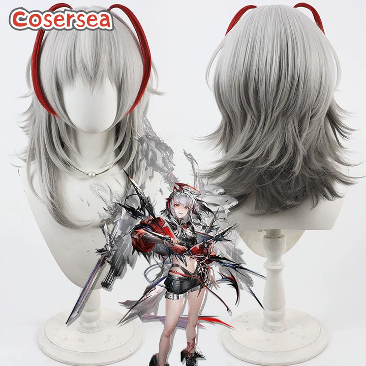 Cosersea Arknights Wisadel 40cm Long Straight Silver White Mixed Gray Red Cosplay Wigs