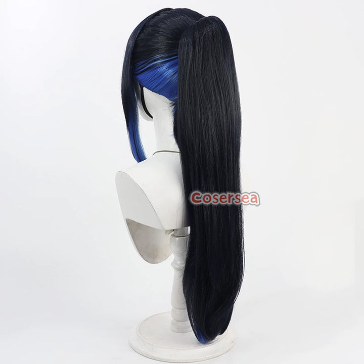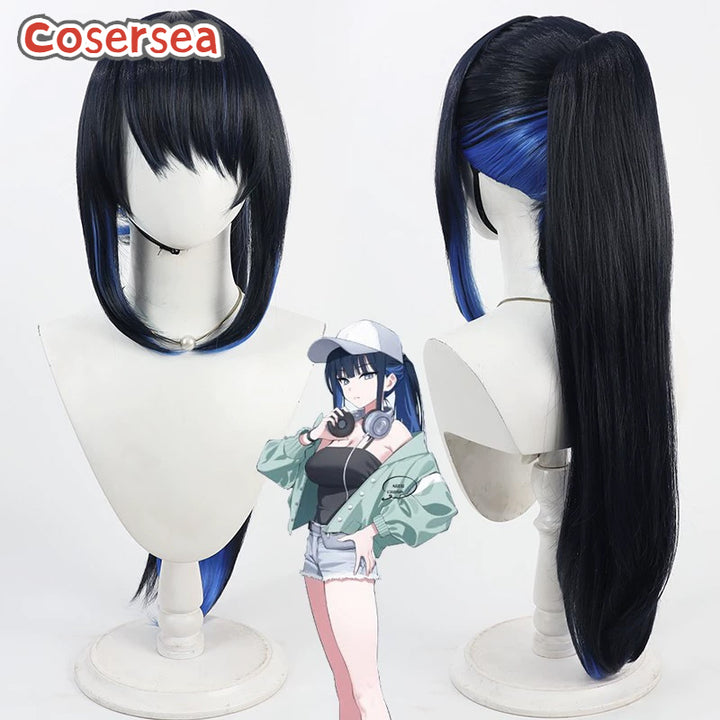 Cosersea Blue Archive Jomae Saori 60cm Mixed Blue Ponytail Cosplay Wigs
