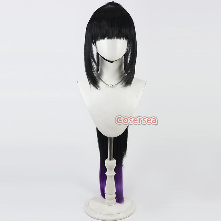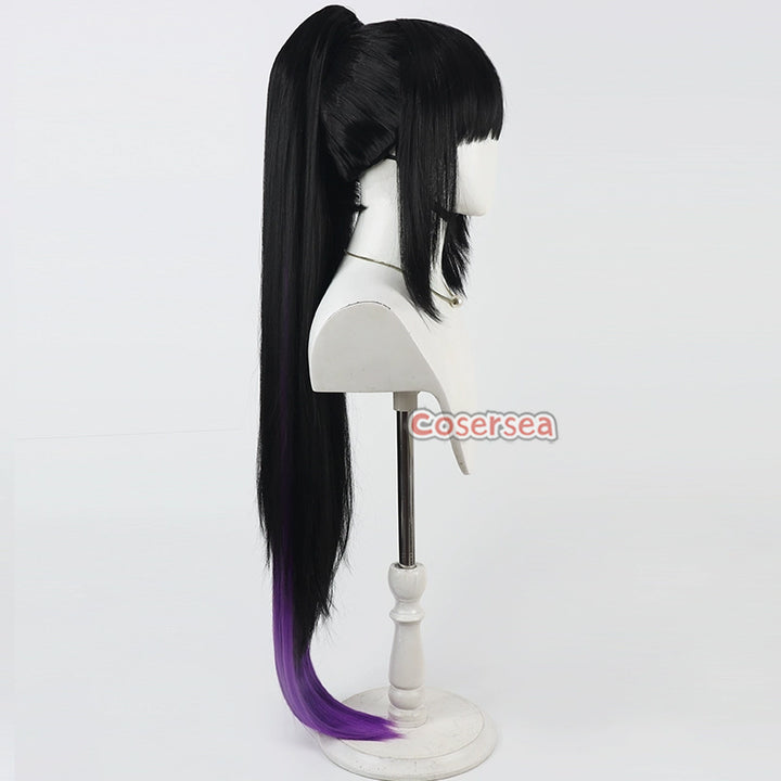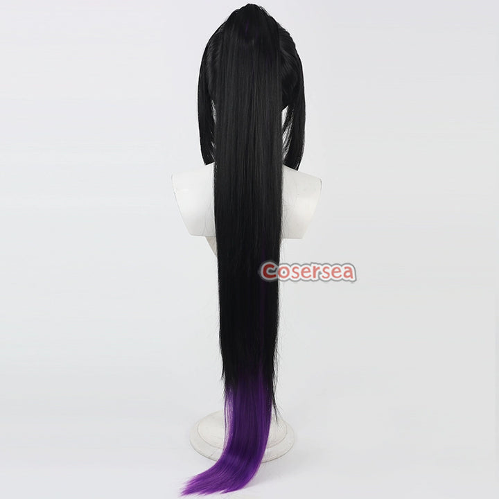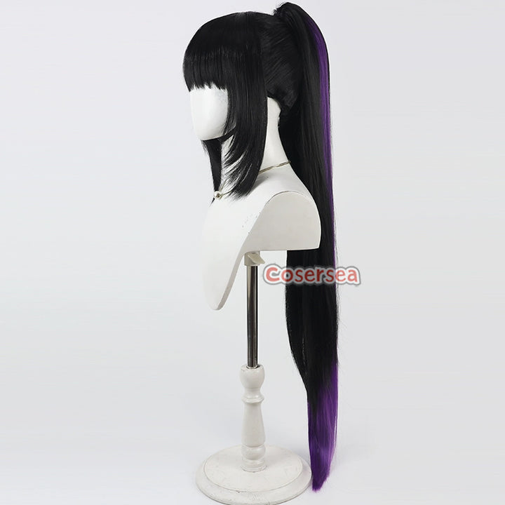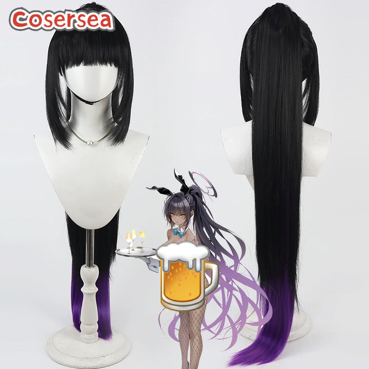 Cosersea Blue Archive Kakudate Karin 100cm Black Mixed Purple Ponytail Cosplay Wigs