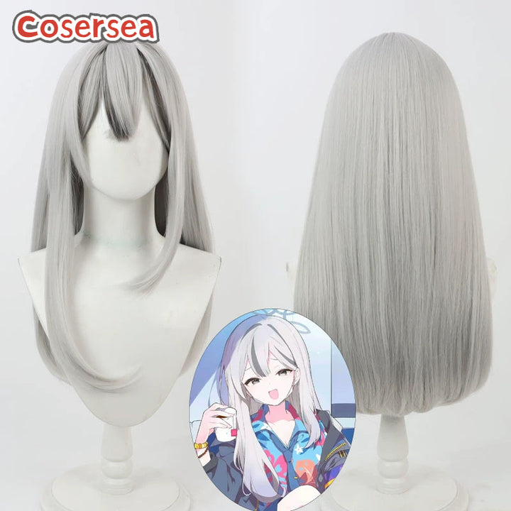 Cosersea Blue Archive Konoka 65cm Long Silver White Mixed Gray Cosplay Wigs