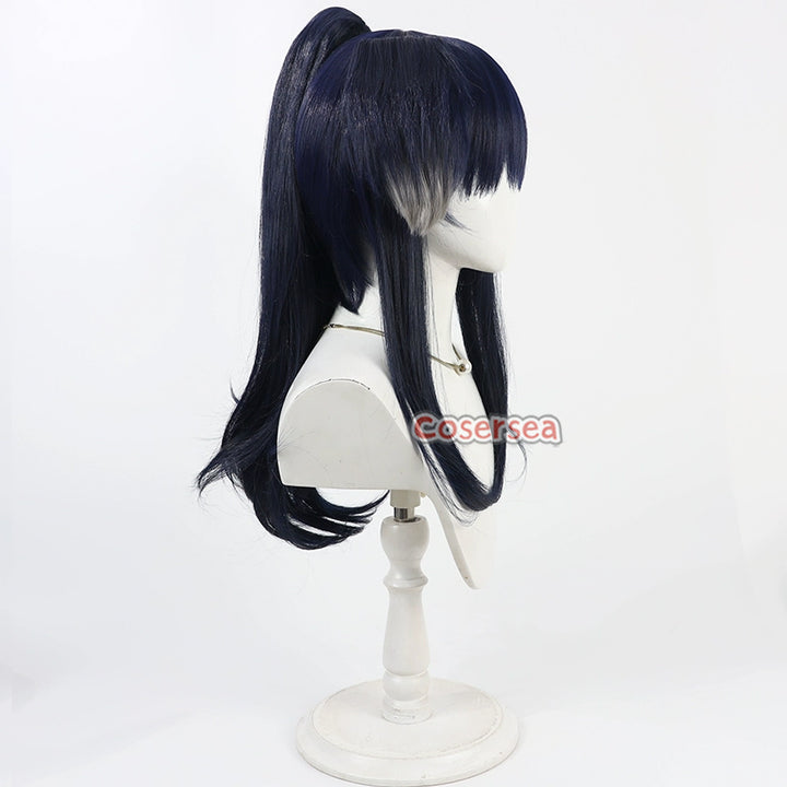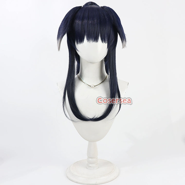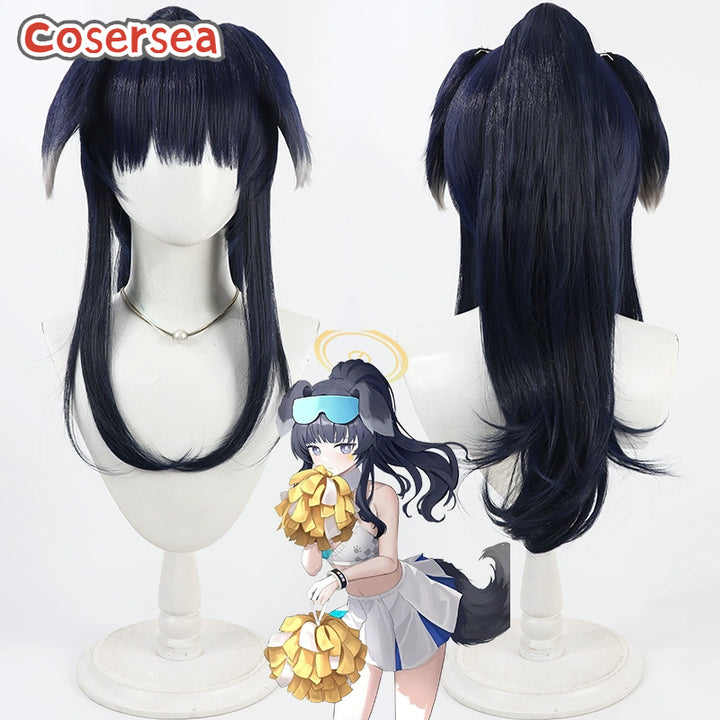 Cosersea Blue Archive Nekozuka Hibiki Dark Blue Ponytail Cosplay Wigs