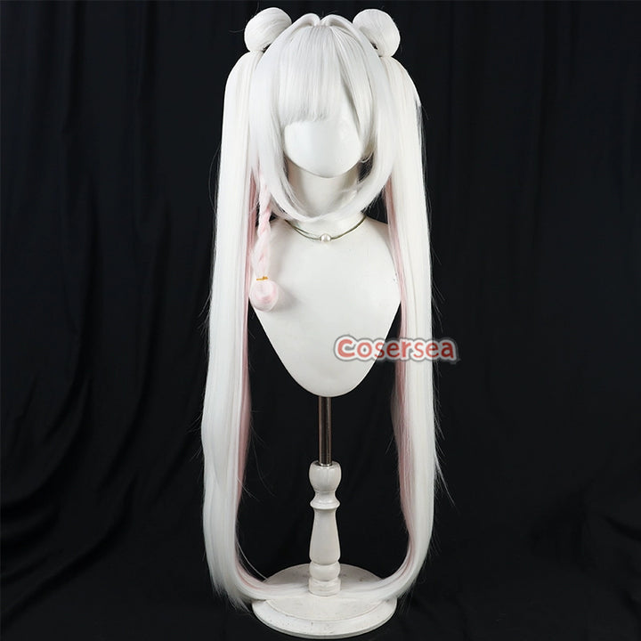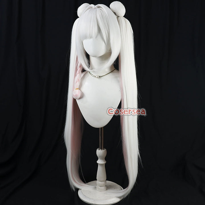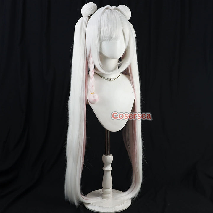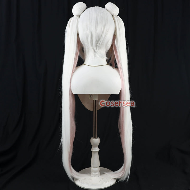 Cosersea Blue Archive Plana 100cm White Mixed Pink Ponytail Cosplay Wigs With Buns