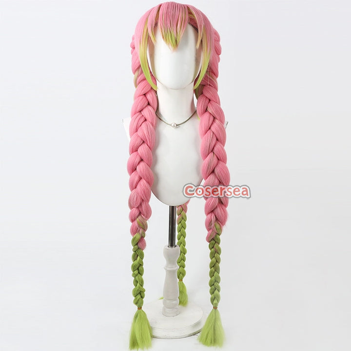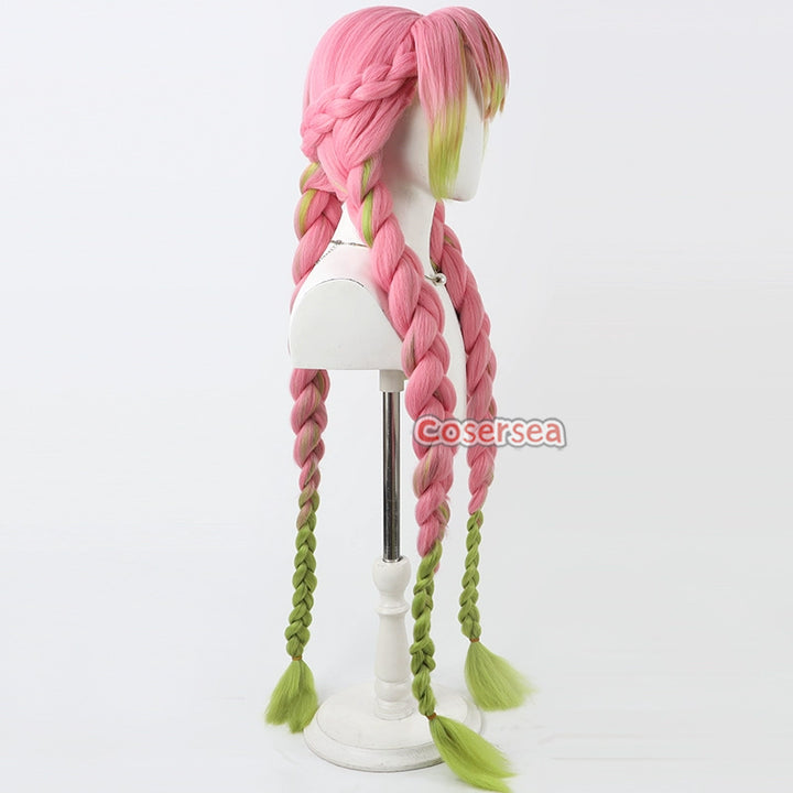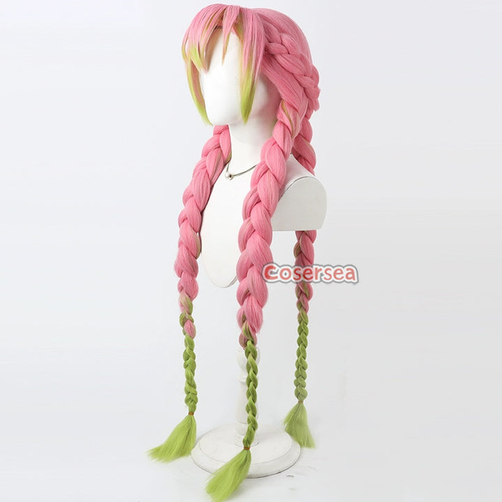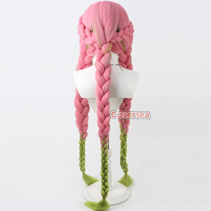 Cosersea Demon Slayer Kimetsu no Yaiba Kanroji Mitsuri Pink Mixed Green Braided Cosplay Wigs