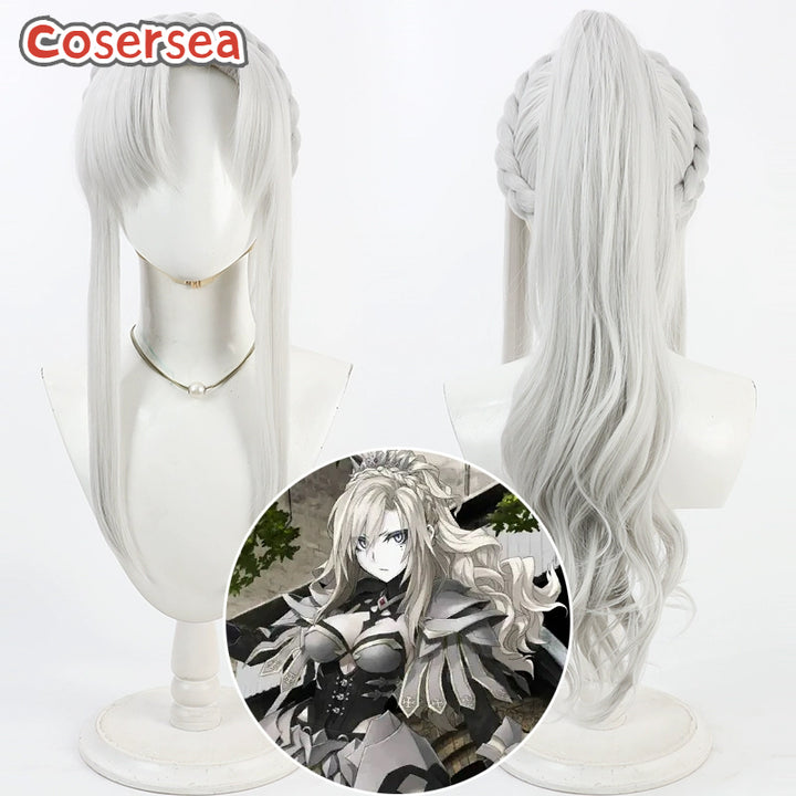 Cosersea Fate Grand Order FGO Kriemhild 75cm Long Wavy Silver White Ponytail Cosplay Wigs