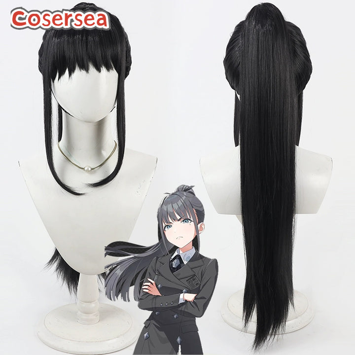 Cosersea Gakuen iDOLMaSTER Tsubame Amaya 80cm Black Ponytail Cosplay Wigs