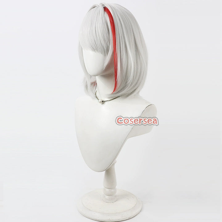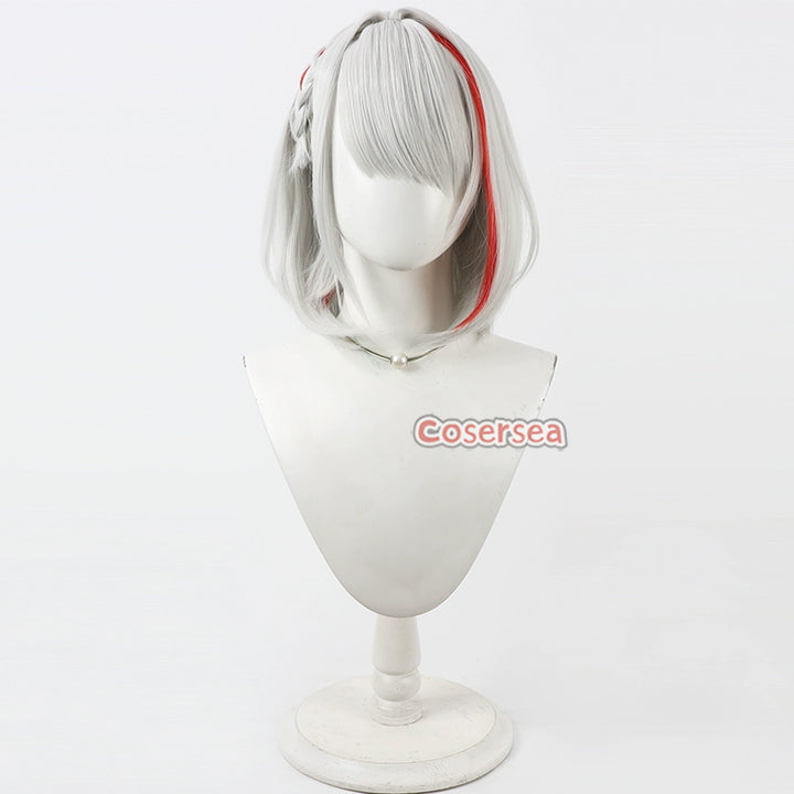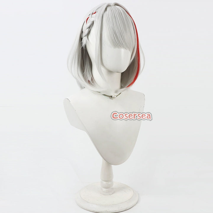 Cosersea Game Azur Lane KMS Duisburg 30cm Silver White Mixed Red Bobo Cosplay Wigs