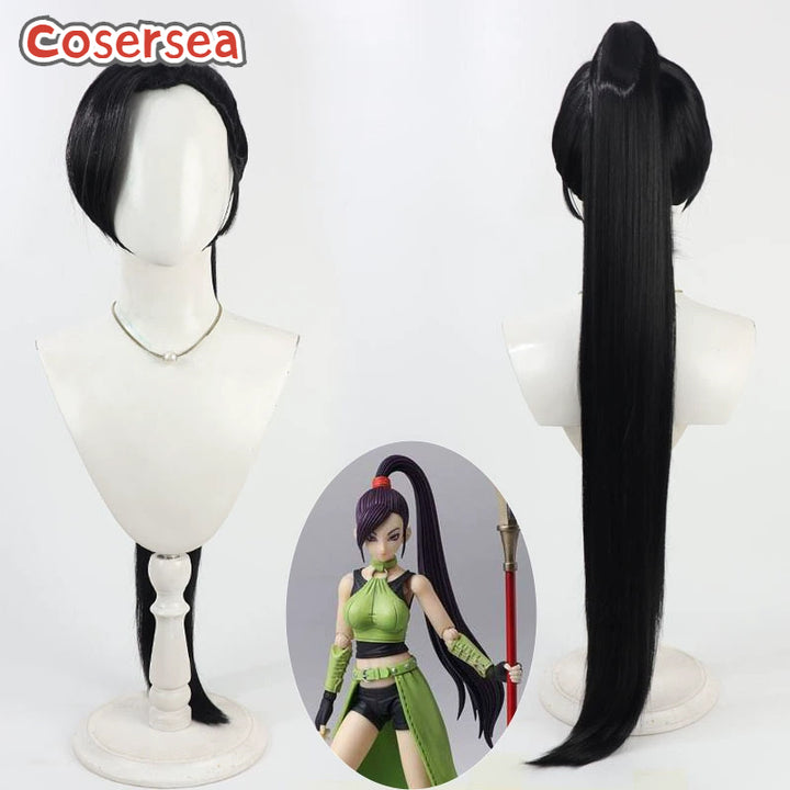 Cosersea Game Dragon Quest XI Jade 85cm Long Black Ponytail Cosplay Wigs