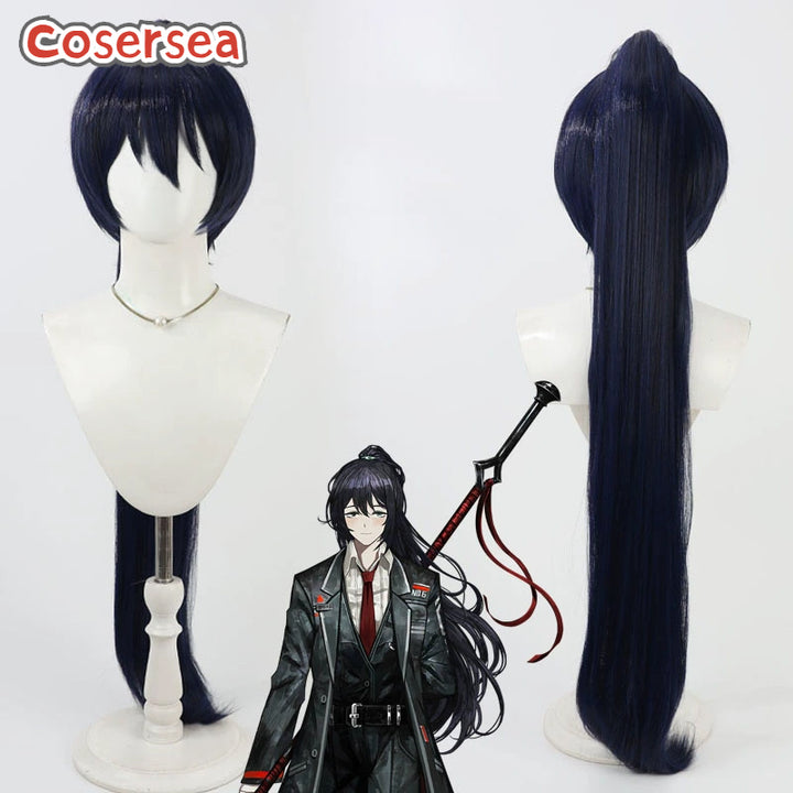 Cosersea Game Limbus Company Hong Lu 100cm Dark Blue Ponytail Cosplay Wigs