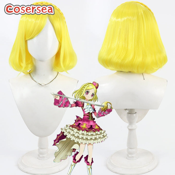 Cosersea Game PriPara Midorikaze Fuwari 35cm Short Yellow Bobo Cosplay Wigs