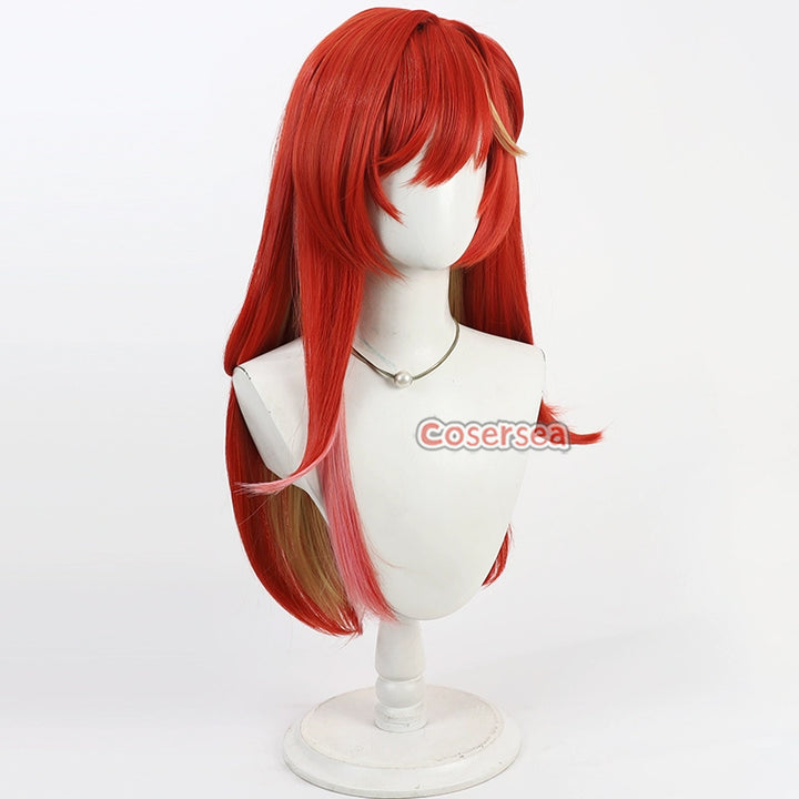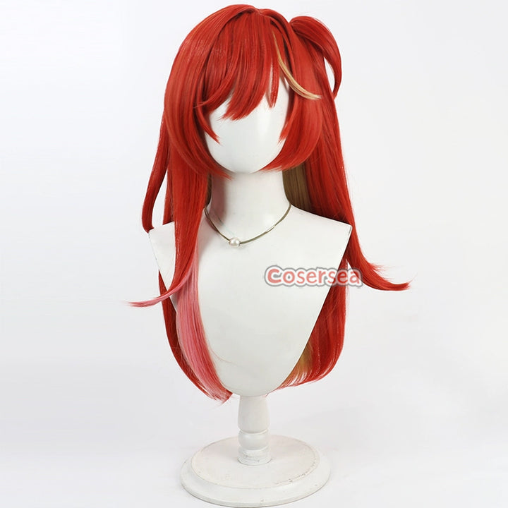 Cosersea Honkai Impact 3rd Senadina 60cm Red Mixed Blonde Ponytail Cosplay Wigs