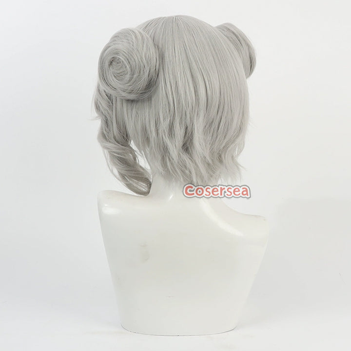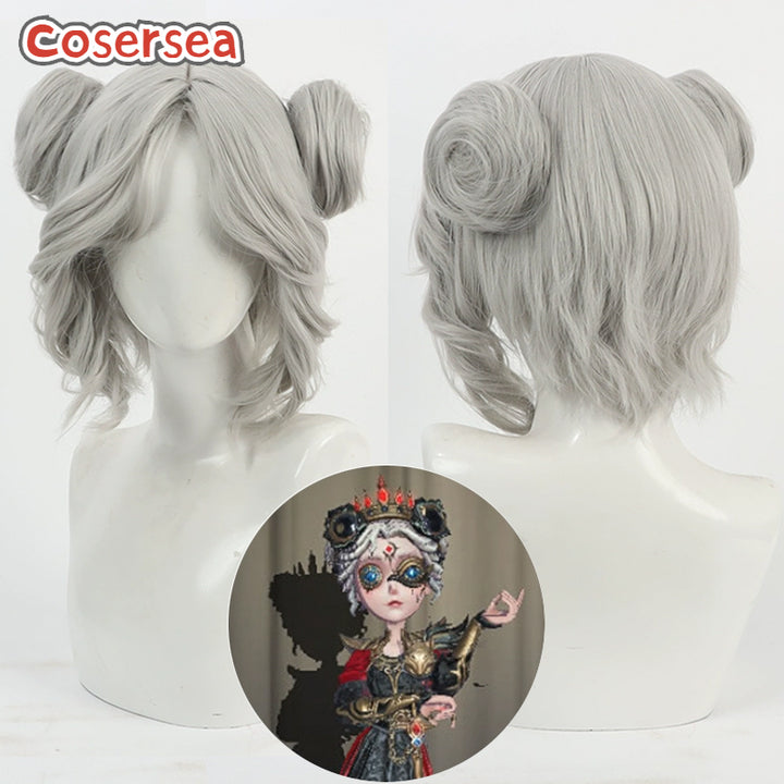 Cosersea Identity V Mechanic Tracy Reznik 30cm Wavy Silver White Cosplay Wigs With Buns