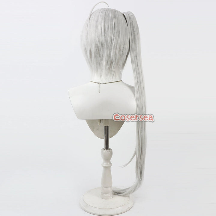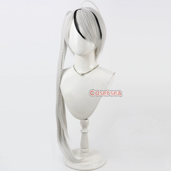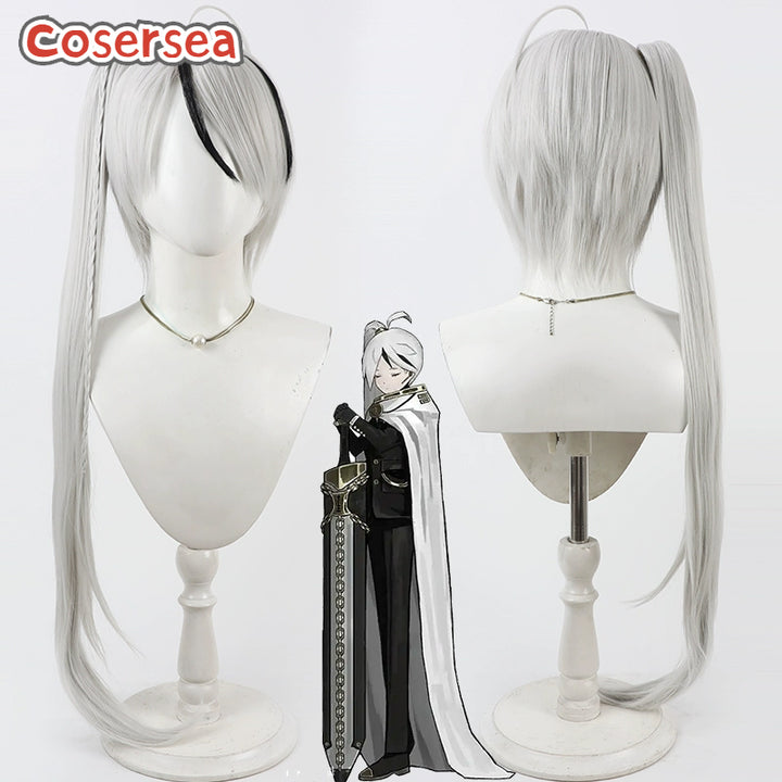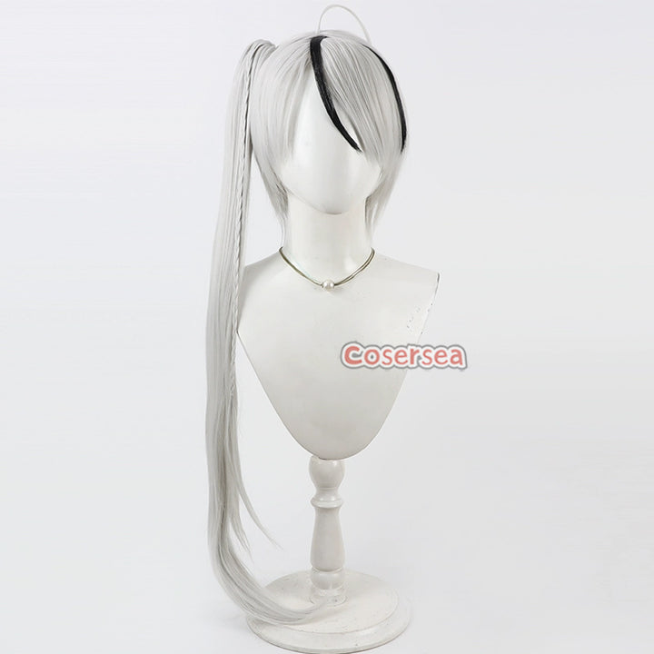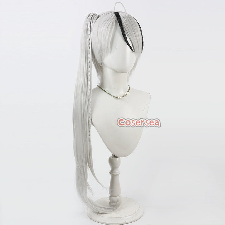 Cosersea Limbus Company Yan Vismok 90cm Silver White Mixed Black Ponytail Cosplay Wigs
