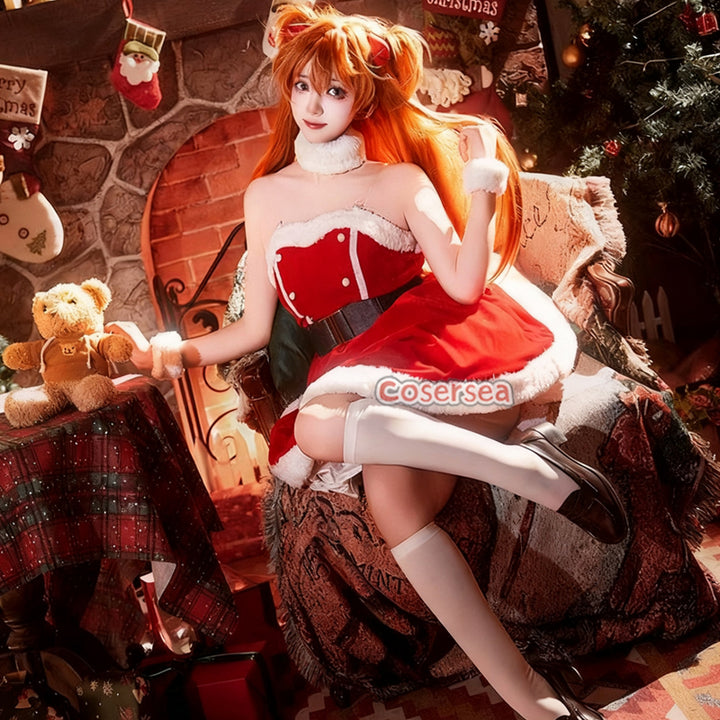 Cosersea Neon Genesis Evangelion Asuka Rei Christmas Dress Cosplay Costume