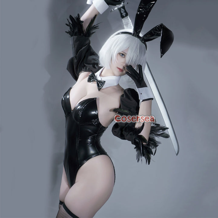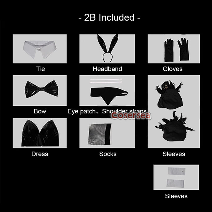 Cosersea NieR:Automata 2B A2 Women Black Bunny Dress Cosplay Costume