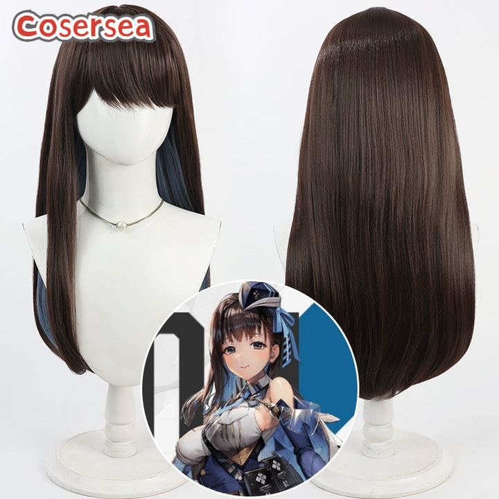 Cosersea Nikke The Goddess of Victory Marian 80cm Brown Mixed Blue Cosplay Wigs