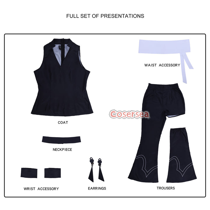 Polyurethane: Coat, Trousers, Waistband, Neck accessory, Wrist accessory, Earrings