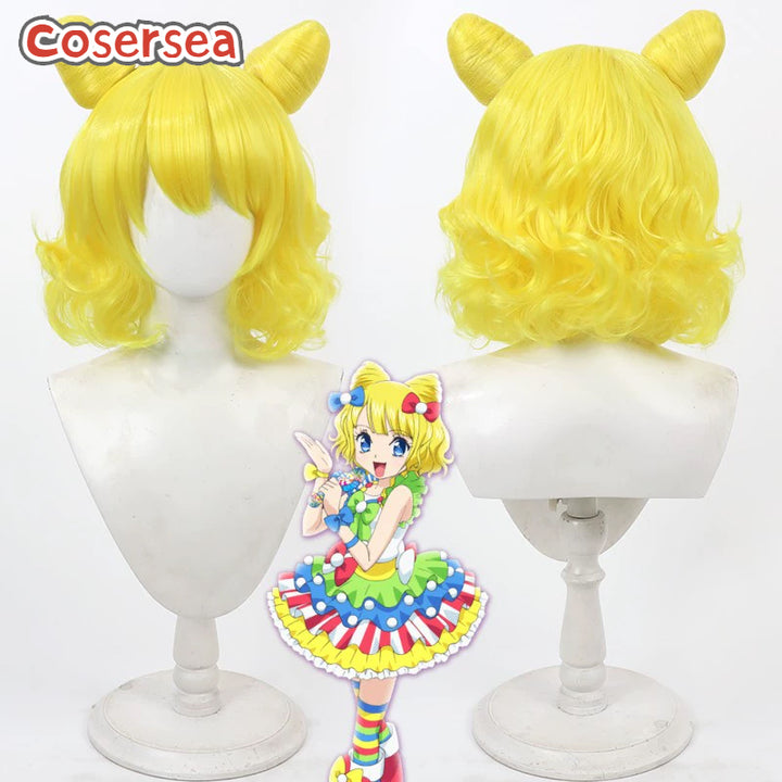 Cosersea Pretty Rhythm Minami Mirei 30cm Wavy Yellow Cosplay Wigs With Buns