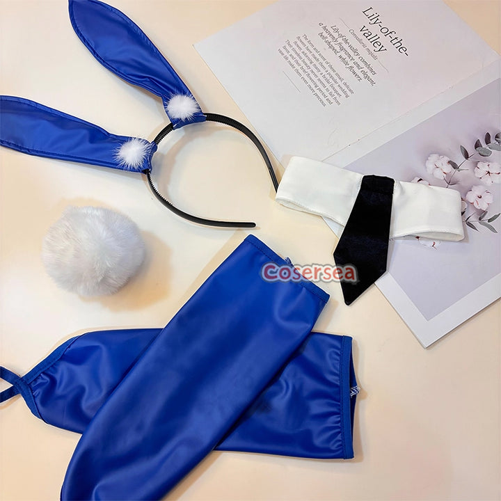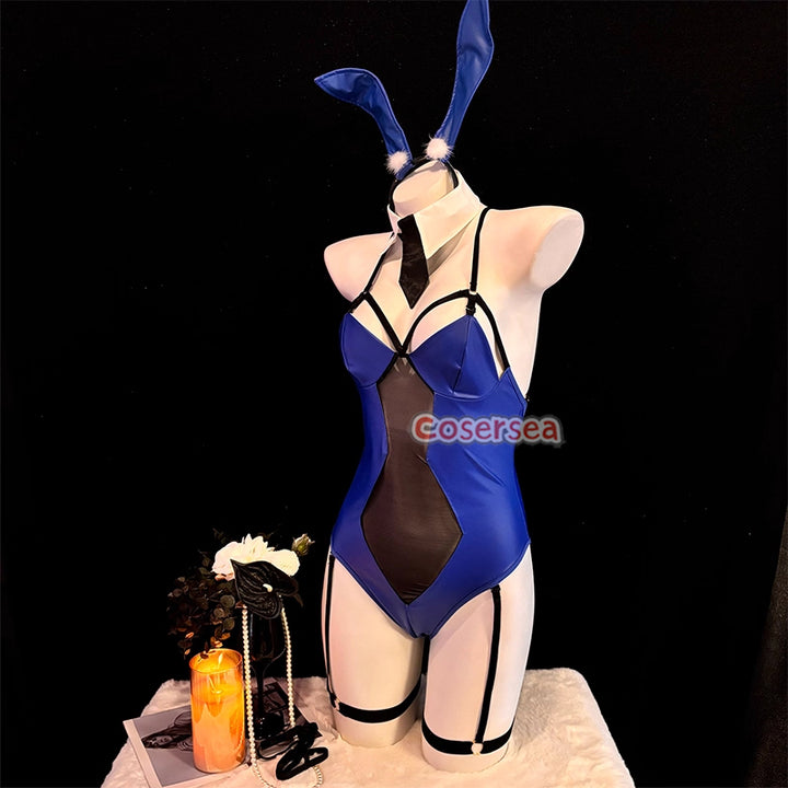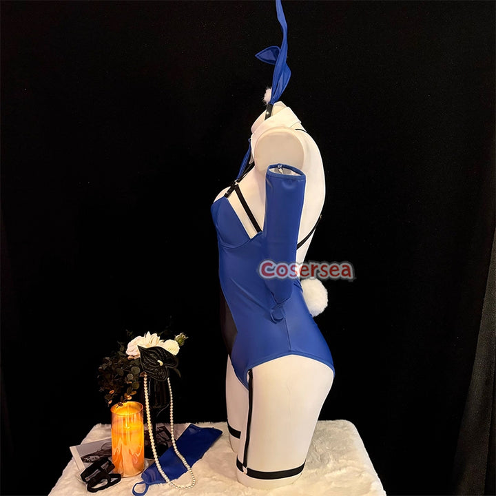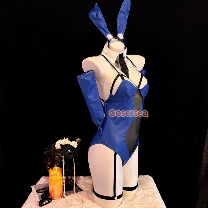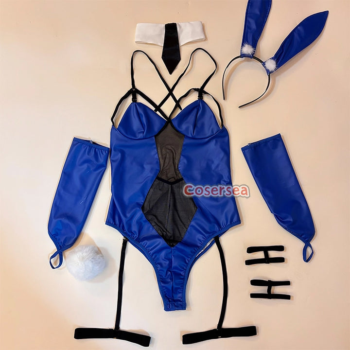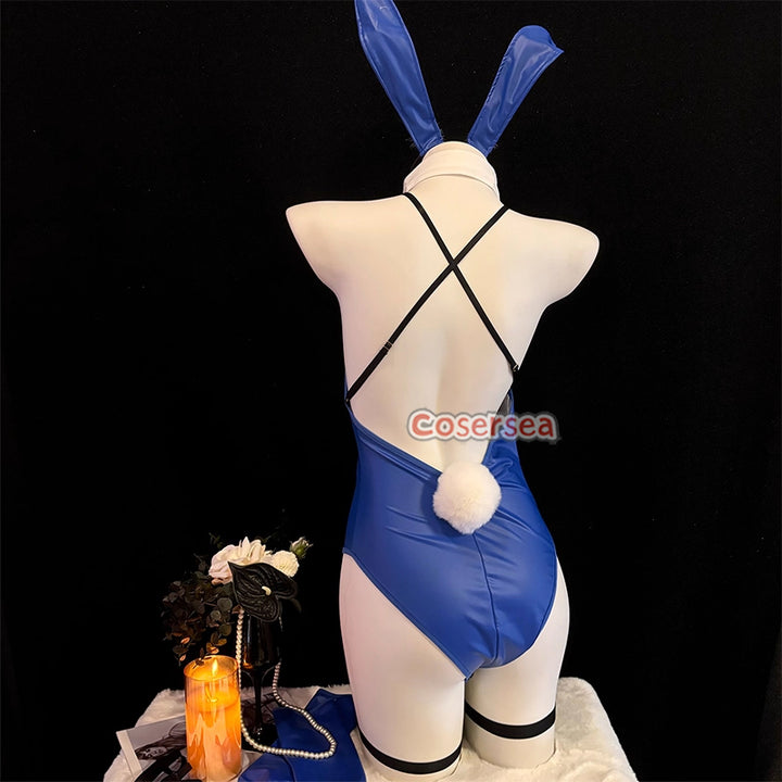 Cosersea Sexy Women Shiny Blue Bunny Cosplay Costume Bodysuit Jumpsuit