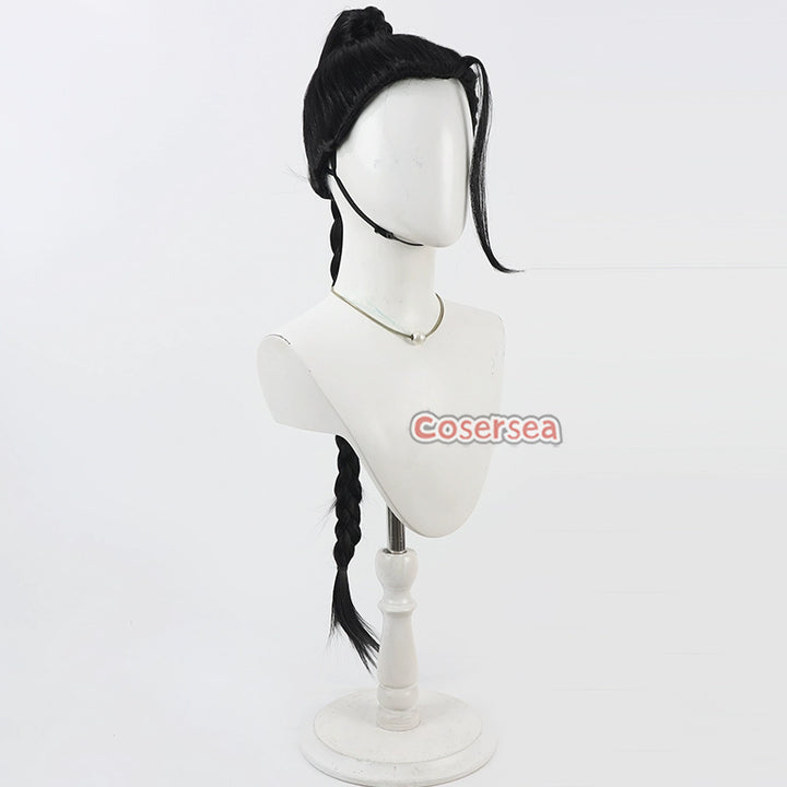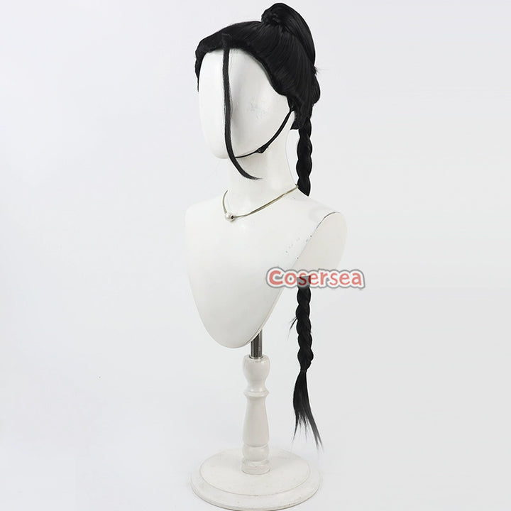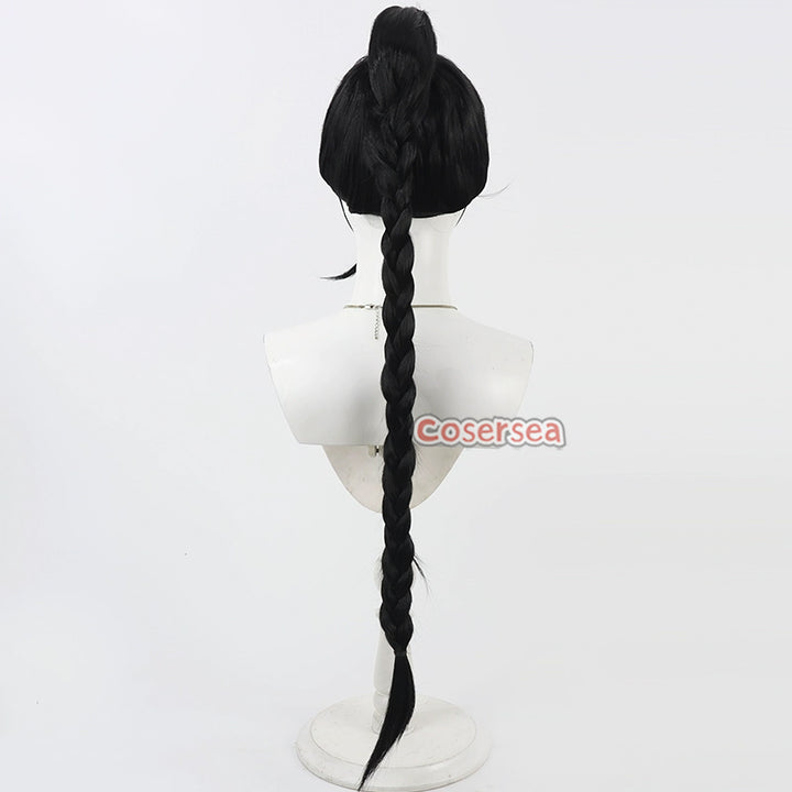 Cosersea Street Fighter 6 Jamie 90cm Black Braided Ponytail Cosplay Wigs