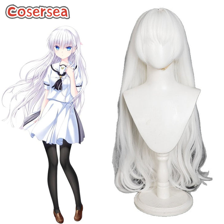 Cosersea Summer Pockets Naruse Shiroha 85cm Long Wavy White Cosplay Wigs