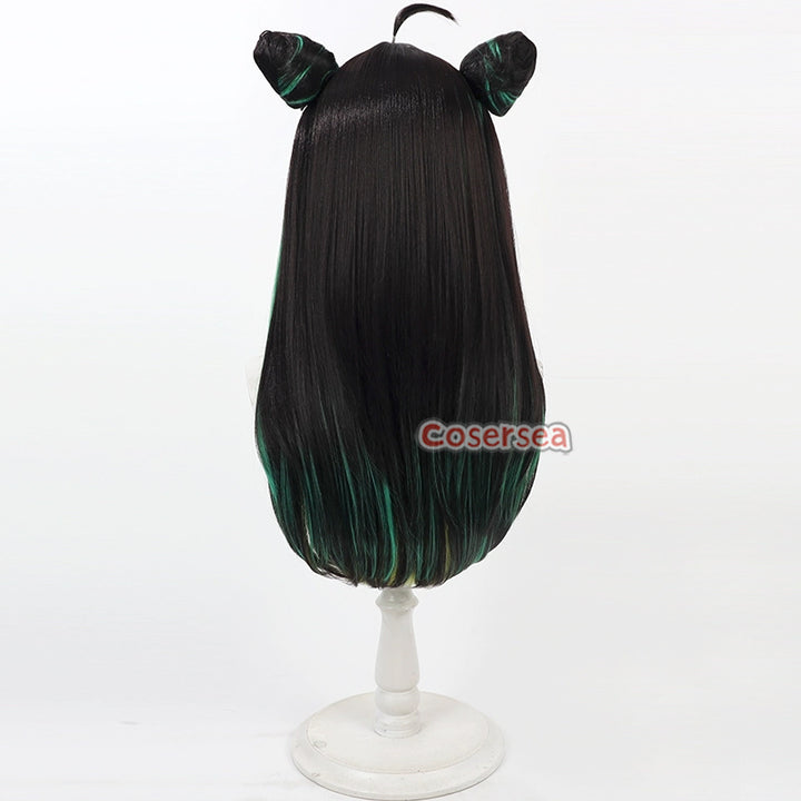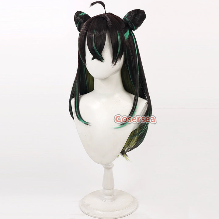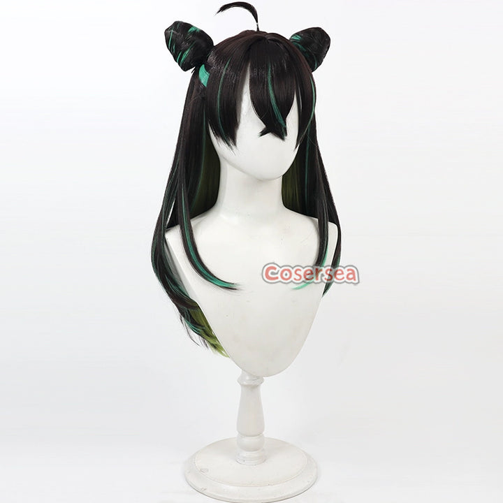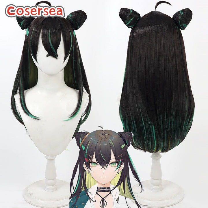 Cosersea Towa Tsugai Hachidori Long Black Mixed Green Cosplay Wigs With Buns