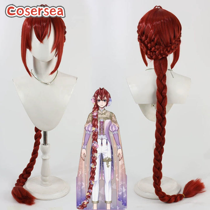 Cosersea Twisted Wonderland Riddle Rosehearts 120cm Red Braided Cosplay Wigs