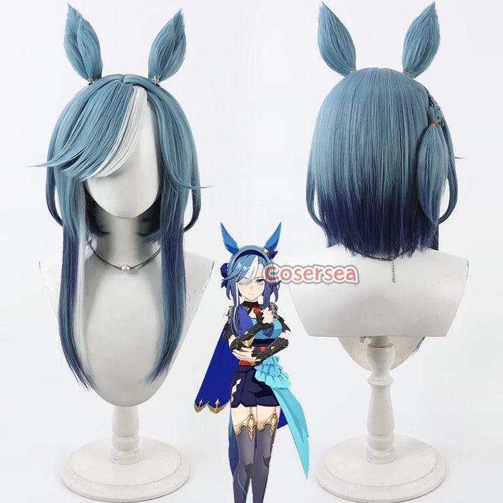 Cosersea Uma musume: Pretty Derby Admire Groove Blue Gradient Cosplay Wigs With Ears