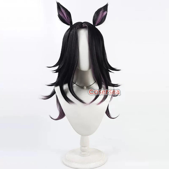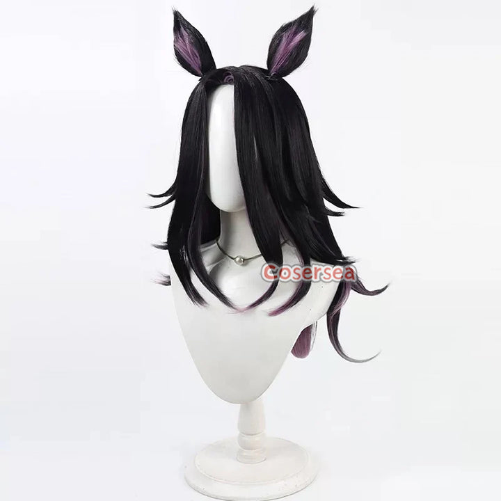 Cosersea Uma musume: Pretty Derby Fenomeno Black Mixed Purple Cosplay Wigs With Tail And Ears