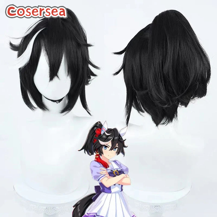 Cosersea Uma musume: Pretty Derby Katsuragi Ace 40cm Black Mixed White Cosplay Wigs