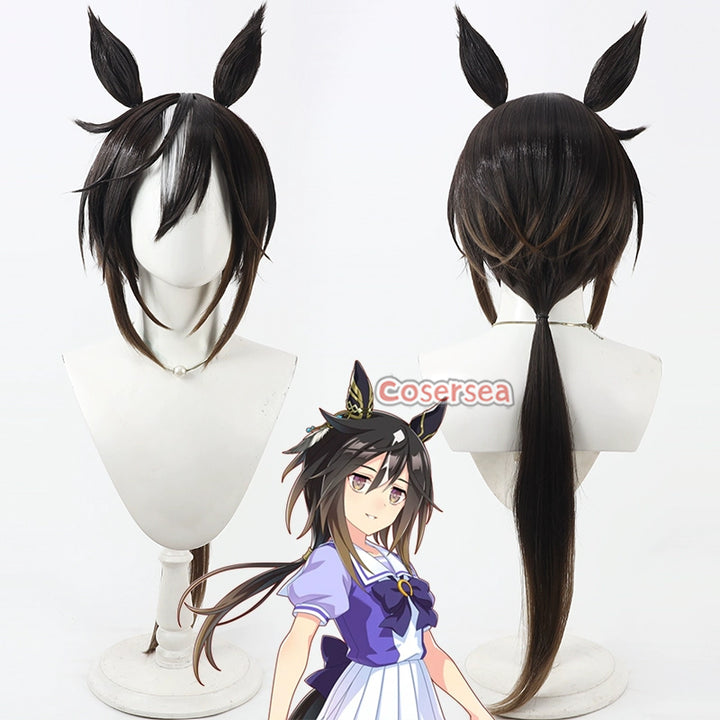 Cosersea Uma musume: Pretty Derby Stay Gold 70m Dark Brown Mixed Cosplay Wigs With Ears