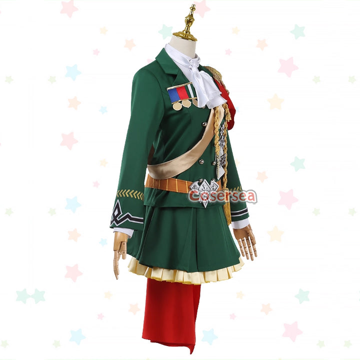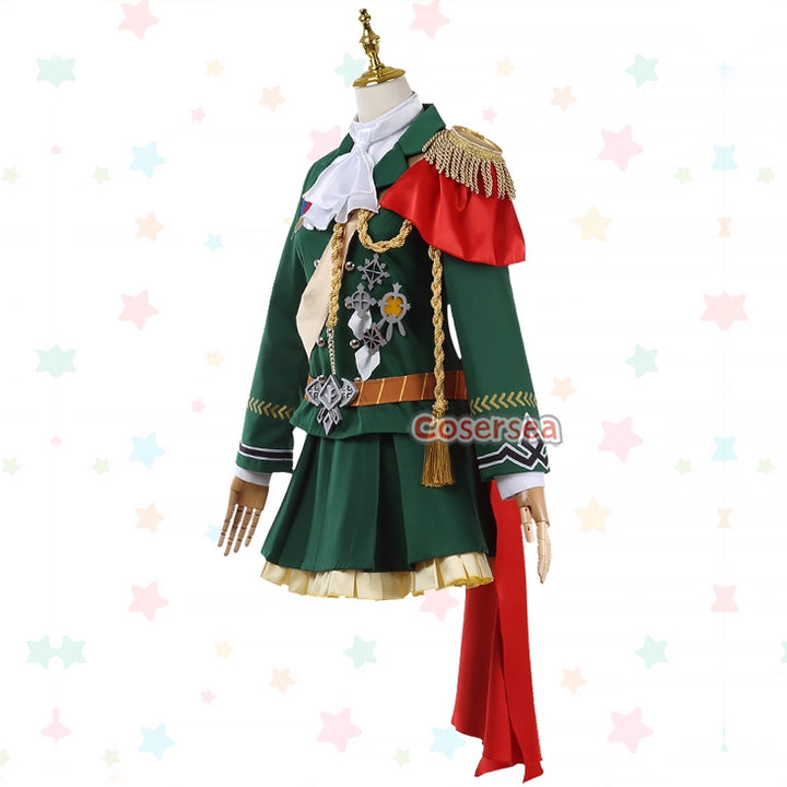 Included: Coat, Shirt, Skirt, Belt, Shoulder straps, Cloak, Neck tie, Hair ornament, Socks, Waist ornament