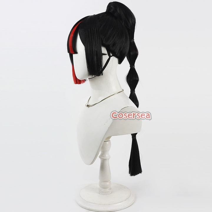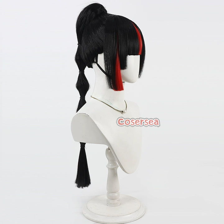 Cosersea Virtual YouTuber Choya Hanabi 70cm Black Mixed Red Ponytail Cosplay Wigs