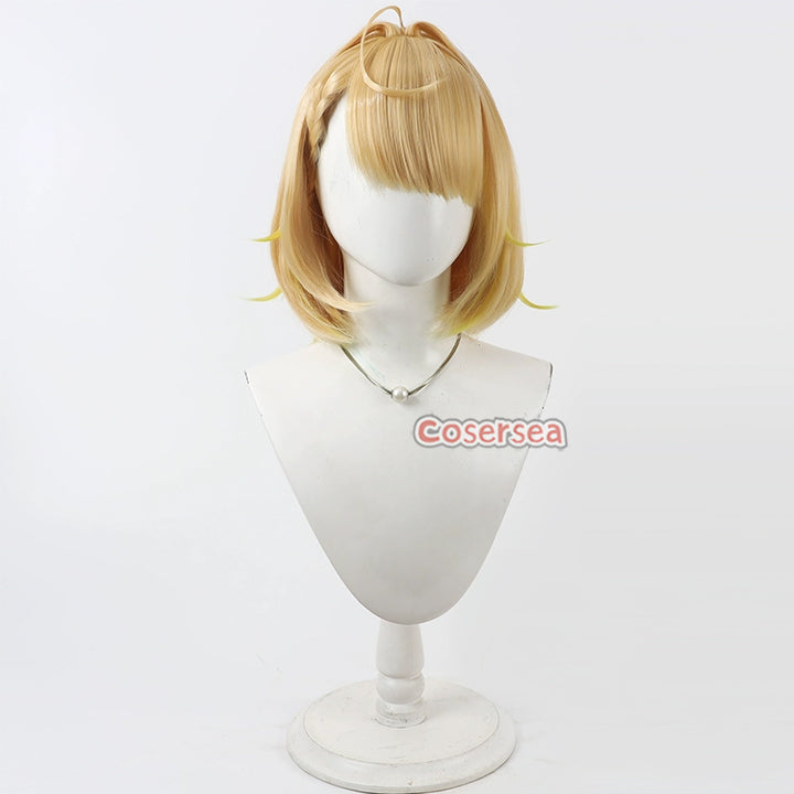 Cosersea Virtual YouTuber Hoshikawa Sara 30cm Blonde Mixed Yellow Bobo Cosplay Wigs