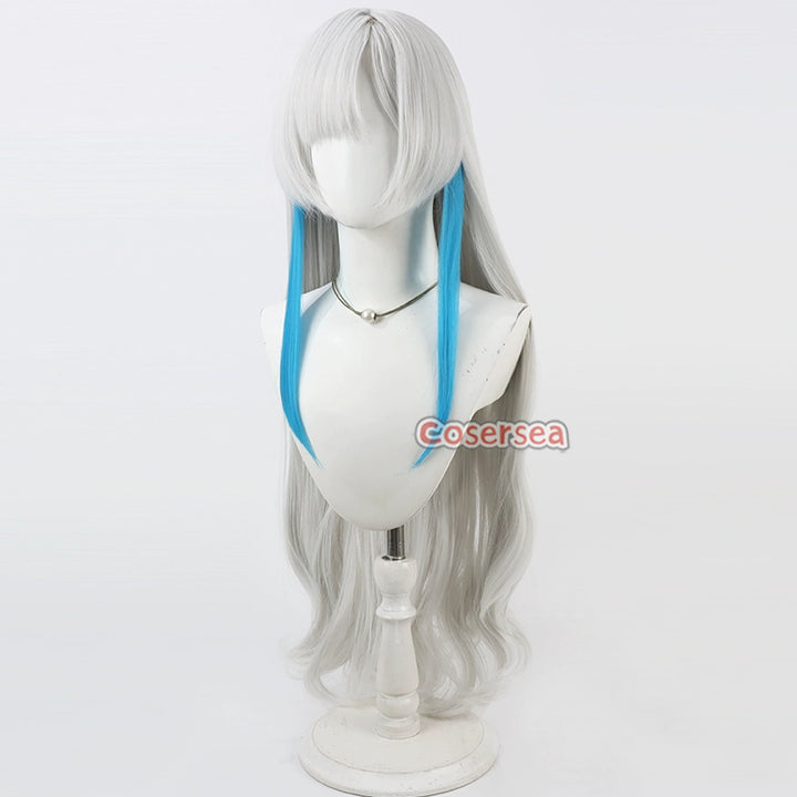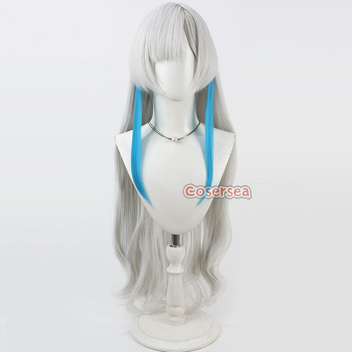 Cosersea Virtual YouTuber Isekaijoucho 100cm Wavy Silver White Mixed Blue Cosplay Wigs