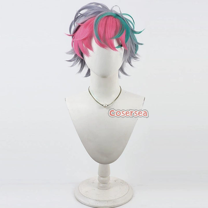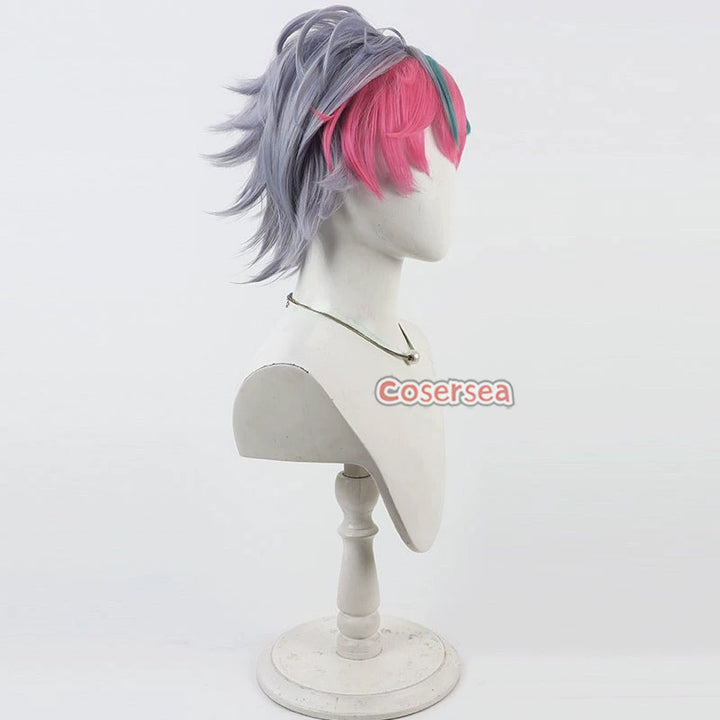 Cosersea Virtual YouTuber Joe Rikiichi 30cm Gray Mixed Hot Pink Green Cosplay Wigs