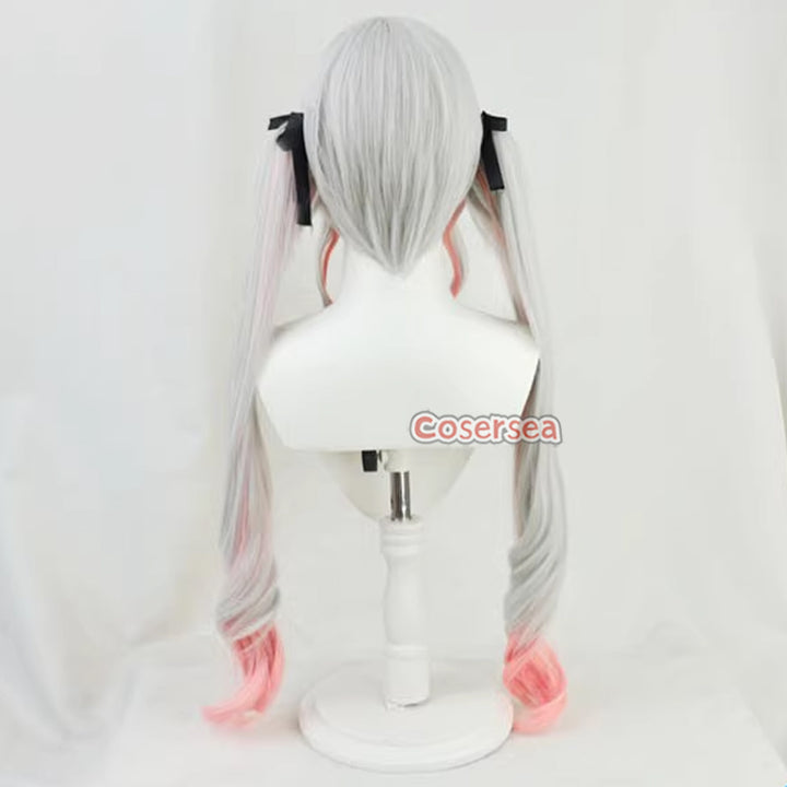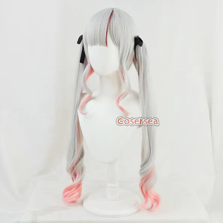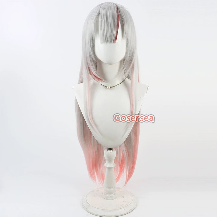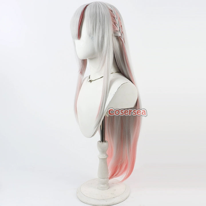 Cosersea Virtual YouTuber Nakiri Ayame 90cm Silver White Mixed Pink Cosplay Wigs
