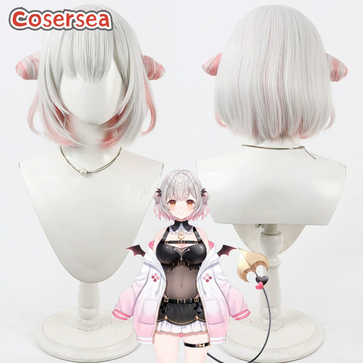 Cosersea Virtual YouTuber Suou Patra 30cm Silver White Mixed Pink Cosplay Wigs With Ears