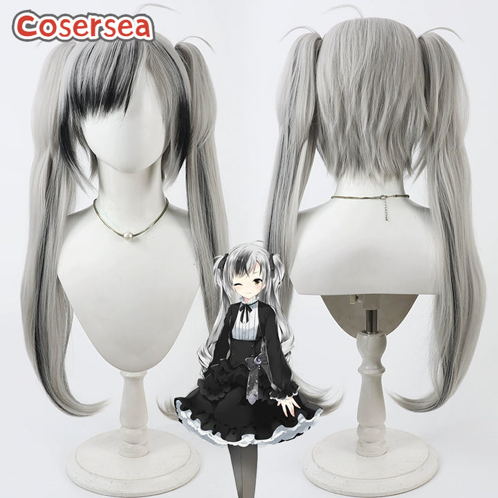 Cosersea Virtual YouTuber Suzuki Masaru 80cm Silver White Mixed Black Ponytail Cosplay Wigs