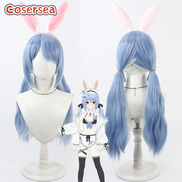 Cosersea Virtual YouTuber Usada Pekora 55cm Light Blue Mixed White Cosplay Wigs