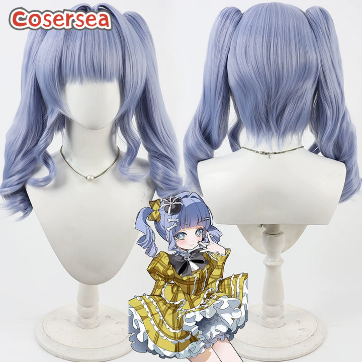 Cosersea Virtual YouTuber Yano Kuromu Wavy Light Blue Ponytail Cosplay Wigs