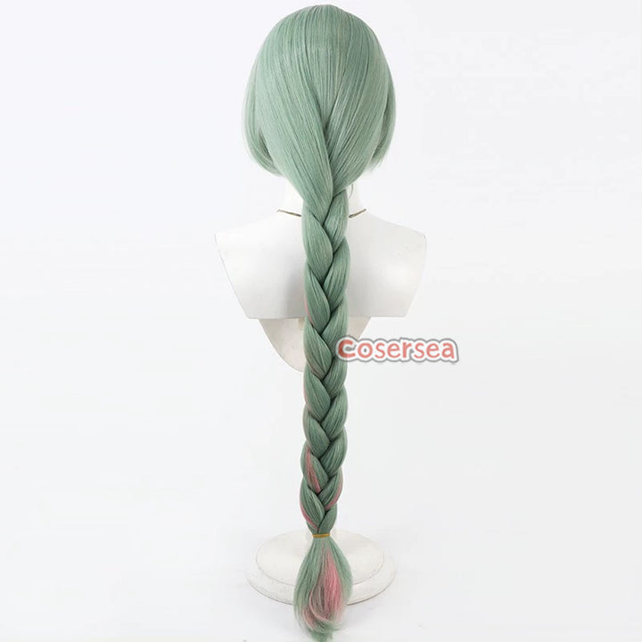 Cosersea Wuthering Waves Phrolova 100cm Green Mixed Pink Braided Cosplay Wigs