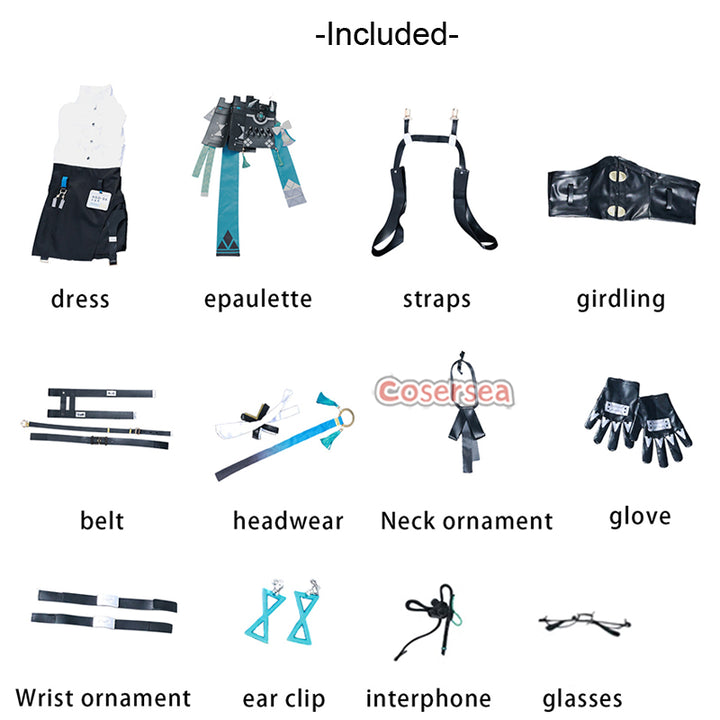Included: Dress, Epaulette, Straps, Girdling, Belt, Headwear, Neck ornament, Gloves, Wrist ornament, Ear clip, Interphone, Glasses