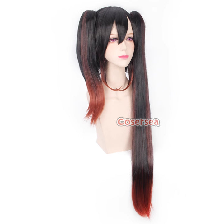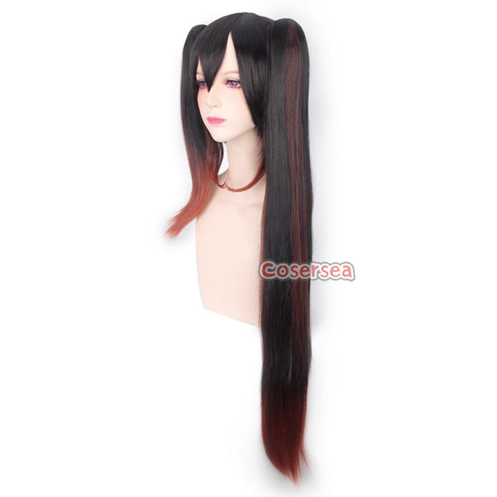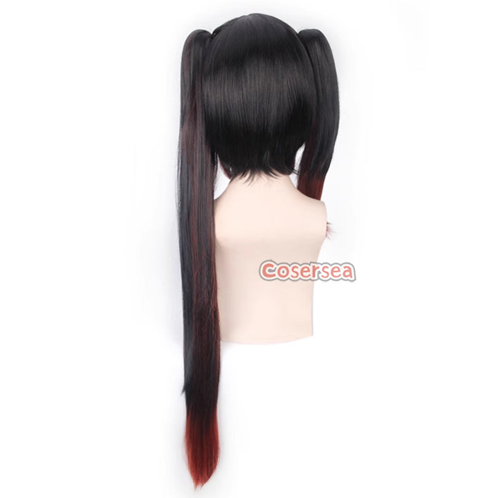 Date a Live Tokisaki Kurumi 80cm Black Mixed Red Ponytail Cosplay Wigs
