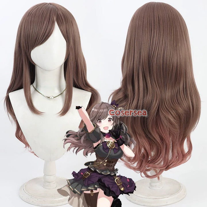 Gakuen Idolmaster Tsukioka Kogane Brown Gradient Cosplay Wigs