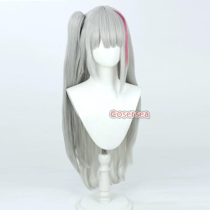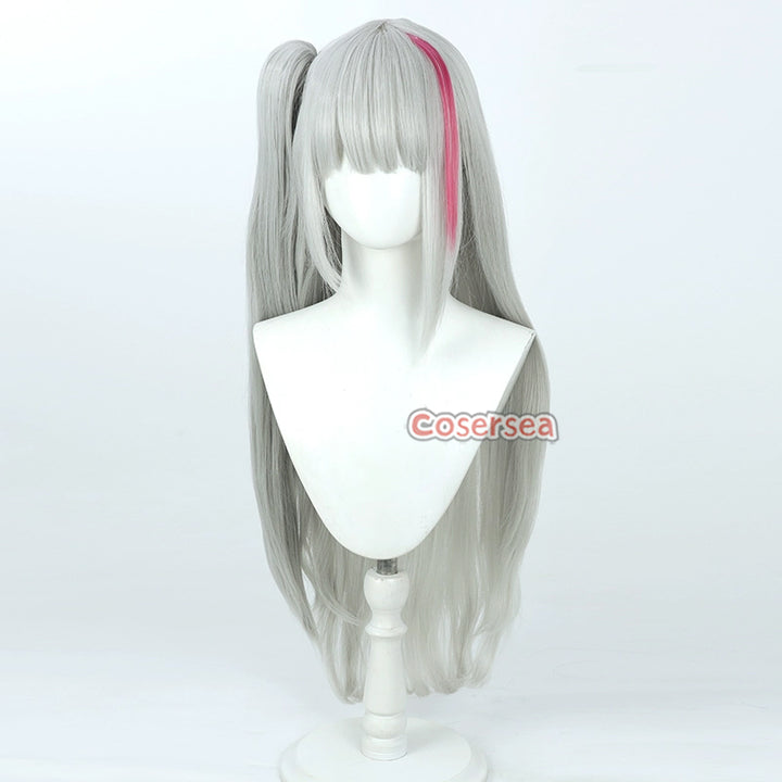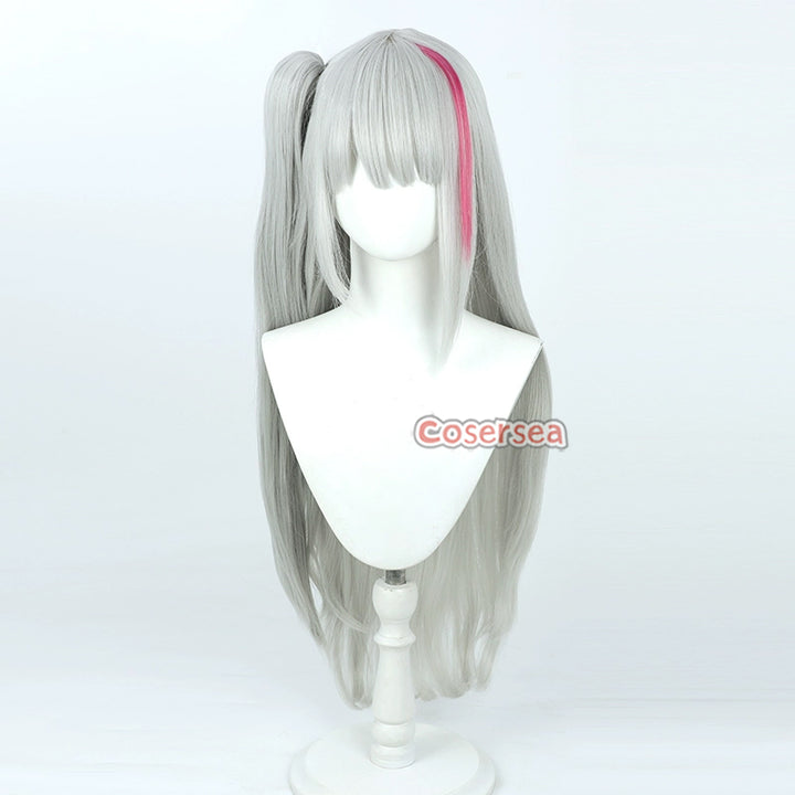 Girls' Frontline MDR Kuro 70cm Silver Gray Mixed Pink Ponytail Cosplay Wigs