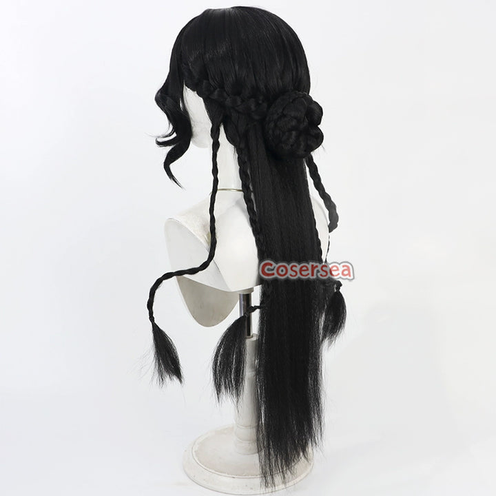 Identity V Fiona Gilman 80cm Long Black Cosplay Wigs With Buns