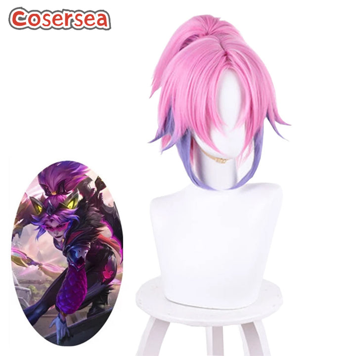 LOL Battle Bat Vayne 40cm Pink Mixed Purple Ponytail Cosplay Wigs